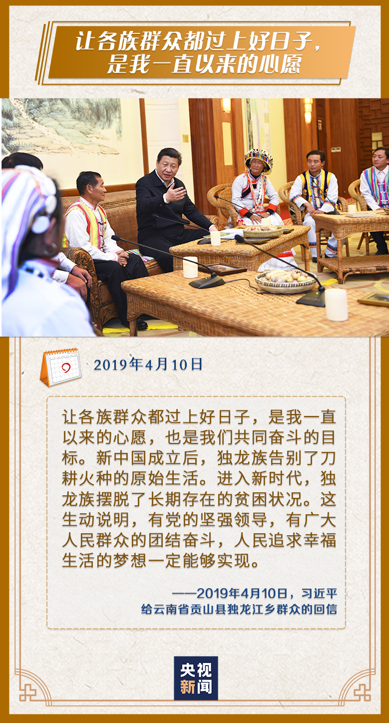 这些年,习近平总书记多次深入民族地区调研,与乡亲们共商脱贫致富大计,开出一张张脱贫“药方”:在湘西十八洞村,他首次提出了“精准扶贫”;在大凉山腹地,他嘱咐村第一书记和驻村工作队,要真抓实干、坚持不懈;在云南三家村中寨司莫拉佤族村,他指出,乡亲们脱贫只是迈向幸福生活的第一步,是新生活、新奋斗的起点。