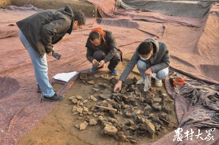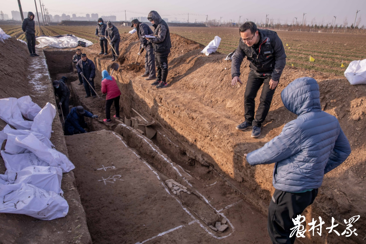 图|麦苗儿正在返青时节,考古队用洛阳铲勘探着这片神秘的土地。