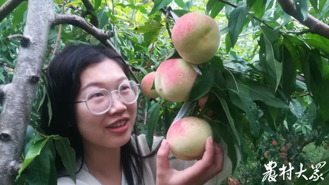 游客在采摘桃子。