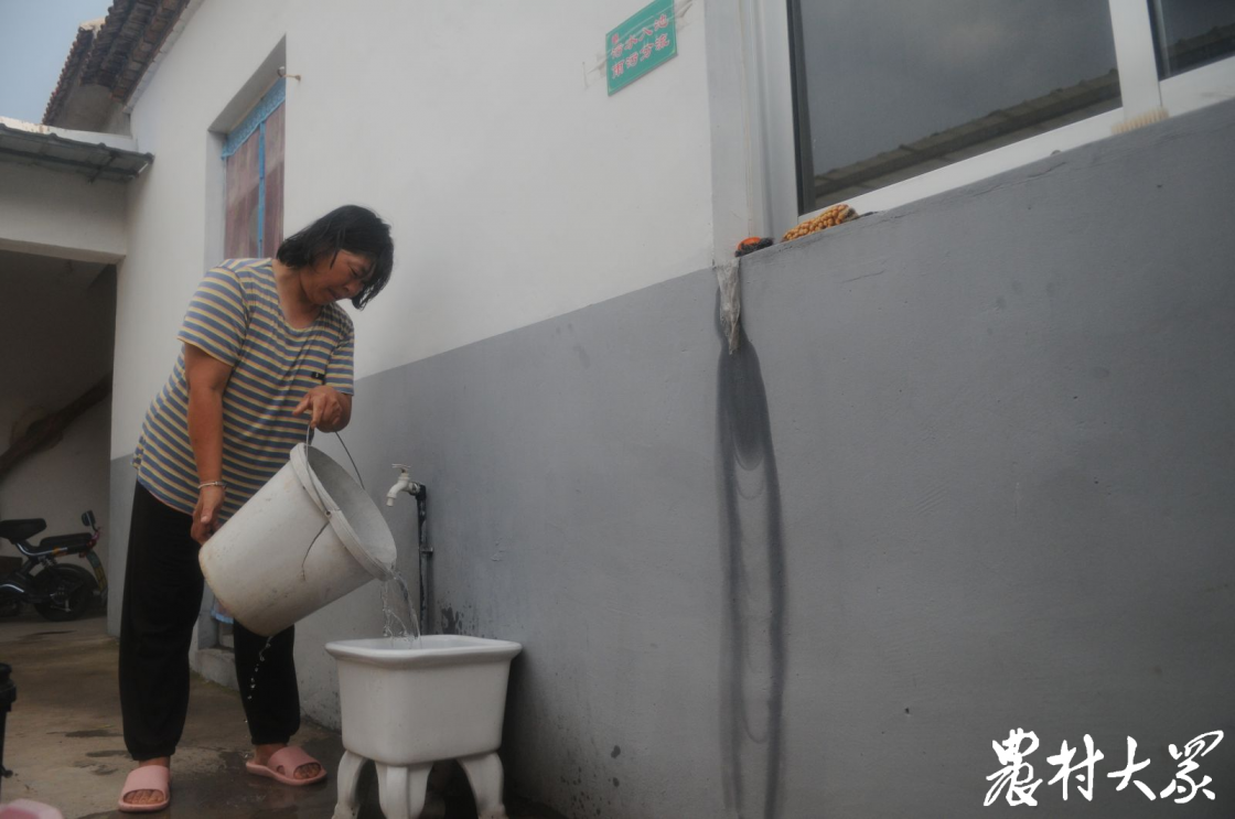 在王子山村,家家装有一个污水收集池,池子接入村主管网,实现了污水有效收集和雨污分流。图为村民王金凤将污水倒入收集池。
