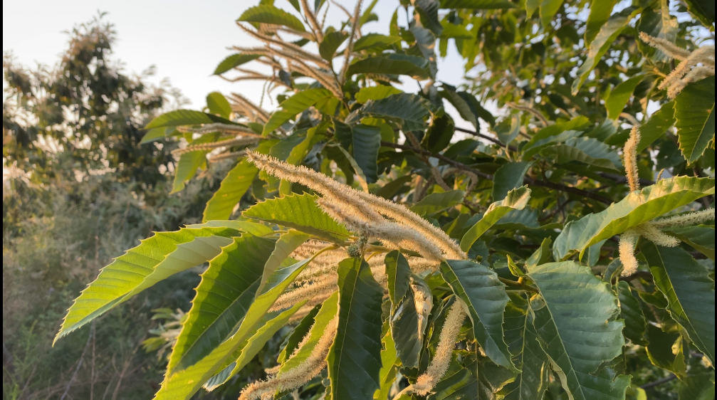 板栗花开之时,夏风吹拂枝头,散发出独有的阵阵花香,令人迷醉乡野。 栗树花开之时,根部已有长满嫩刺的花蒂,花谢后花蒂会慢慢长成浑身是刺的栗蓬。历经三个月的生长,在九月份成熟。 作为江北最大的板栗种植示范园的池上镇素有“板栗之乡”美称。全镇现有板栗种植面积2万余亩,年销售额达8000万元。其种植,主要分布在池上镇七峪、花林、赵庄、三小峰、三郝峪等村,品种以野山栗(油栗)、泰安薄壳、黄棚、燕山早丰等为主。
