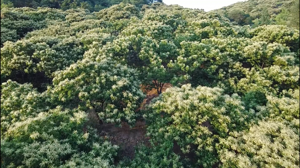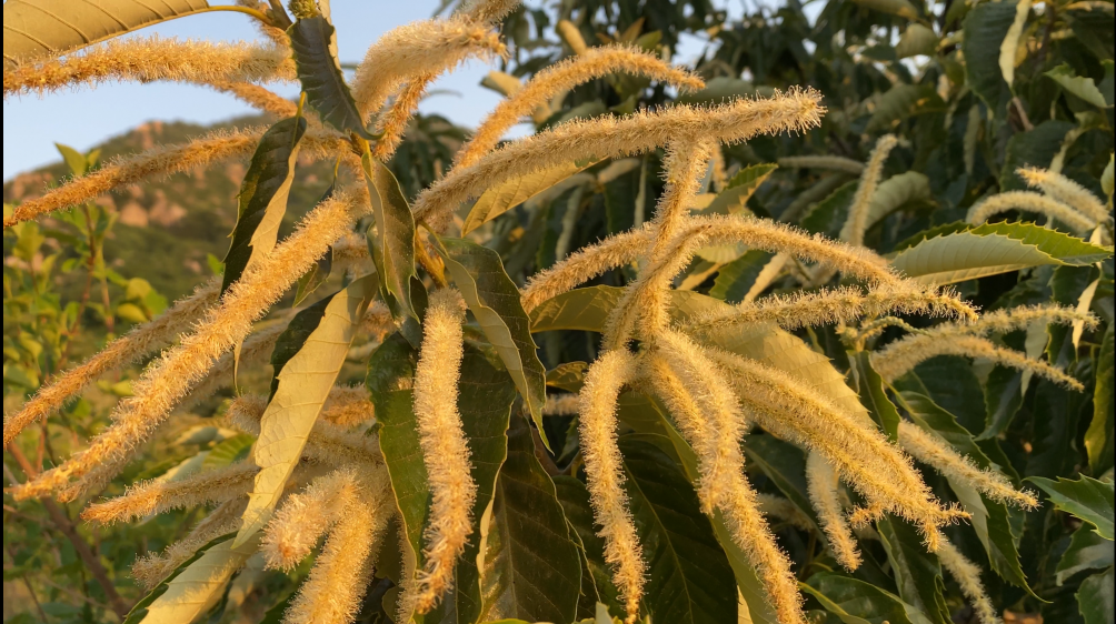 “枝头银穗舞,百态顺然生”,每年端午前后,正是博山区池上镇板栗花开之时,漫山遍野栗树银花。