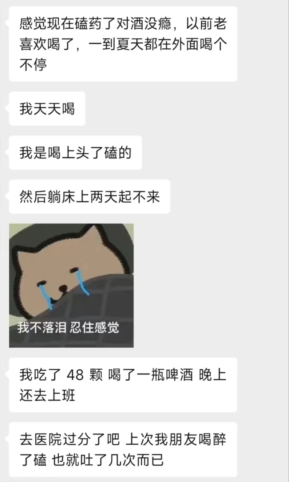 一个药物滥用微信群中,有用户说,因为郁闷,一口气吃了72颗;另一名聊天者表示,自己吃右美沙芬一直保持在48粒。苏梦翔对此表示担忧:大量服用药物可能会造成肝肾急性损伤、呼吸抑制等一系列后果。