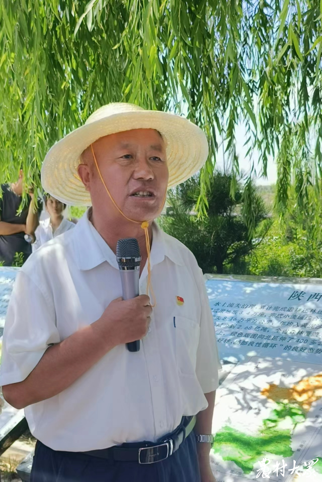 中午时分,高西沟村党支部书记姜良彪站在龙头山山顶介绍村庄发展情况。70多年来,高西沟村党支部“四任班子三代人”团结带领党员群众,坚持填沟打坝修梯田、植树种草建果园,闯出一条水土流失综合治理的科学发展之路;村庄4平方公里的土地,林草覆盖率达到70%,成为全国生态治理的先进典型。