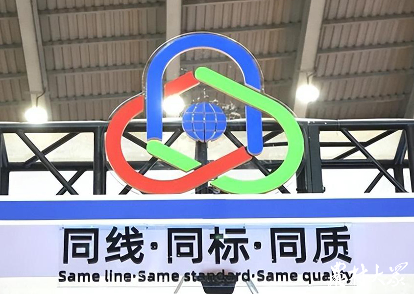 图为去年威海韩博会“同线同标同质”产品展区标识牌。(资料片)
