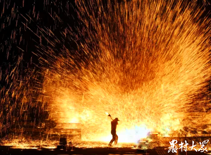 博山自古冶炼行业发达,黄向银介绍,打铁花是当地“闹元宵”、“祭炉神”的一项传统民间活动,祈福新的一年风调雨顺、百业兴旺,代表了一种祝福和美好心愿。