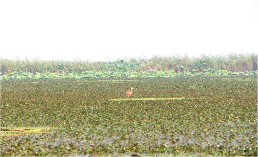爱湖码头上泊着几艘游艇,湖面在朝阳下泛着粼粼的光。我们登船离岸,渐入湖心,忽见天高水阔,水面浩渺,远接天际,苍苍茫茫,竟分不清何处是水,何处是天。游艇破开碧波,船尾拖出一道长长的白练。时有水鸟自水草丛中惊起,翅尖点水,掠向远方。船两边荷叶田田,荷花粉白相间,在晨光中宛若仙子凌波。荷花荷叶的后面,芦苇摇曳,迤逦相接,迎风起伏,飒飒作声,似在低吟着一首古老的水乡谣曲。
