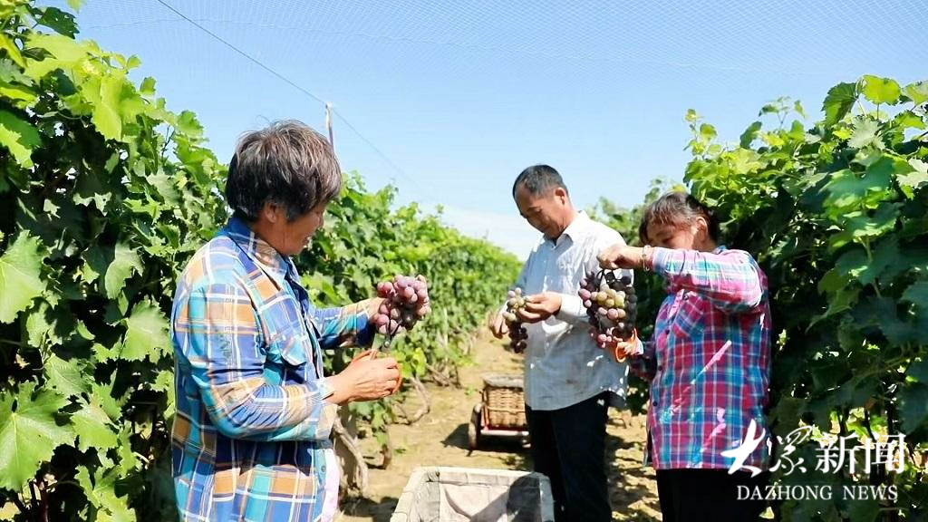 2015年,毛坨村通过“上农下渔”开发,在台田种植葡萄,还与山东农业大学合作研发耐盐碱葡萄新品种。从最初苗成活率不足60%,到如今亩葡萄收入超1万元,毛坨村的葡萄种植越来越红火。