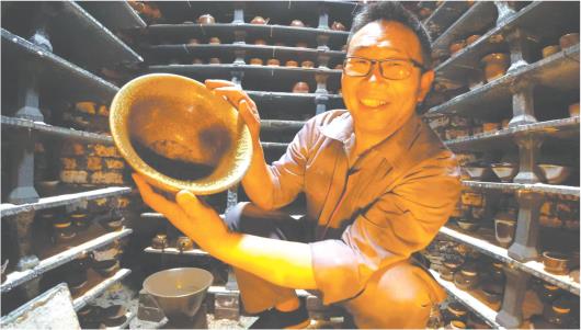 企业领导支持。他天不亮就去矿场挑土,调配方、澄泥、拉坯,常忙到后半夜。试验、失败、重来、再失败……直到第八次,透亮色艳的净水器“出炉”了,他用指节轻敲,一声脆响回荡在车间。初战告捷,他又转向茶器酒器。为找灵感,他跑遍博物馆;专程赴景德镇求学,花三个月工资买手机拍资料,如饥似渴地吸收陶瓷知识。“那段日子像脱了层壳,研发思路豁然开朗。”他说。