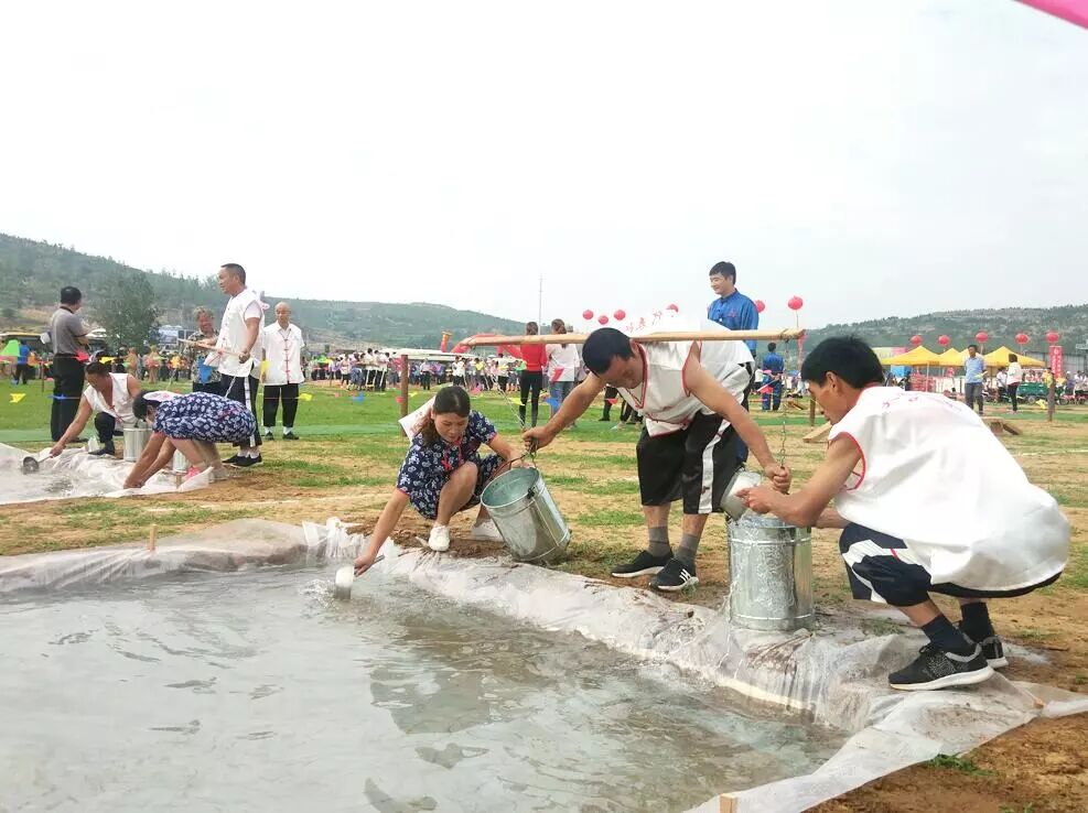 为庆祝首个“中国农民丰收节”,9月6日上午,山东省庆丰收农民运动会启动仪式暨嘉祥县第二届农民运动会开幕式在嘉祥县东方左岸假日小镇开幕。 (图为挑水抗旱比赛。) 本次活动由山东省体育总会、山东省农民体育协会、嘉祥县人民政府等主办,县体育局、农业局、纸坊镇人民政府等承办。 (图为同心锯木比赛。) 本次活动除安排了能体现嘉祥特色的“鼓吹乐”等节目表演,还设置了挑水抗旱、晒场收谷、独轮车运粮、户外狩猎、同心锯木、稻田插秧、拔河等8个贴近农村农民生活,趣味性强的运动项目,参赛农民以乡镇街道为单位组成代表队参赛。运动会在丰富当地百姓文化生活的同时,还促进了当地休闲农业和乡村旅游业的发展。