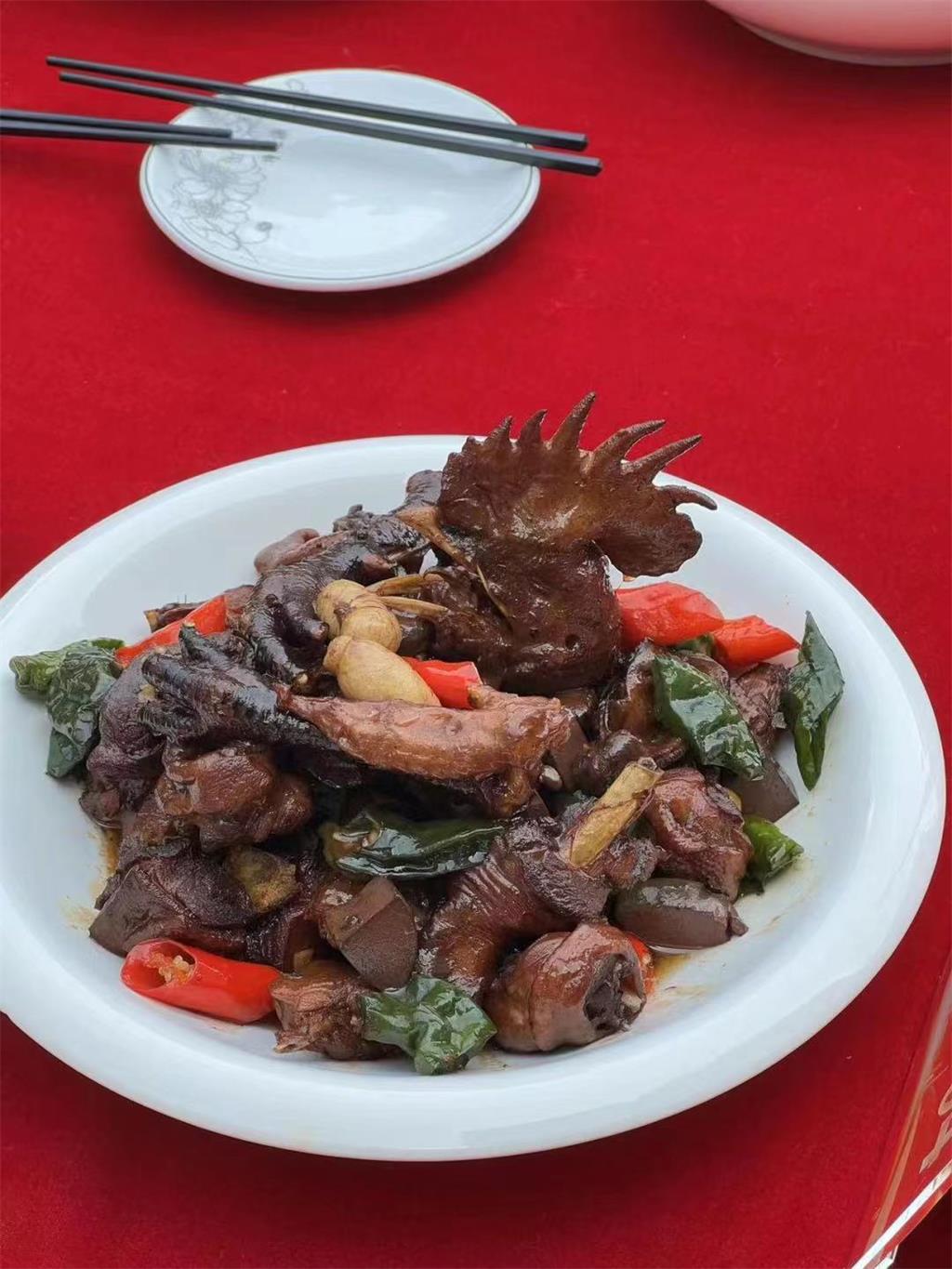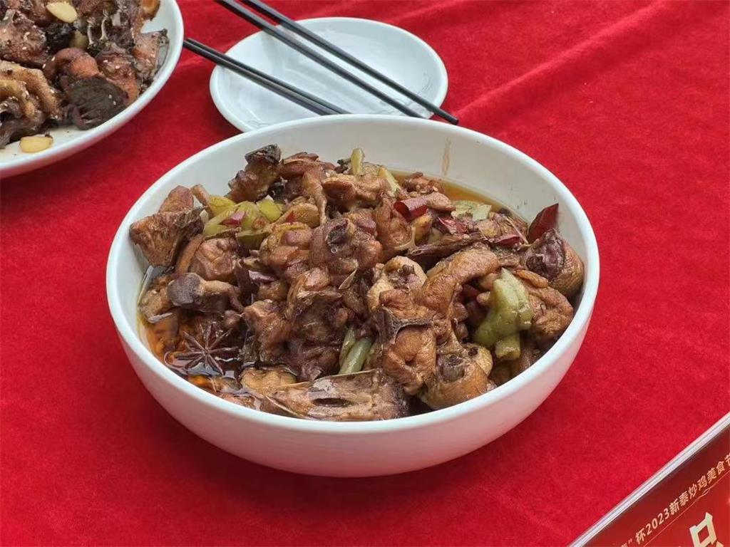比赛现场,选手们纷纷亮出了“看家本领”,来自全市89家餐饮机构的91名厨师带着124道口味不同的特色炒鸡,简单的食材在大厨们娴熟的烹饪手法下被赋予了“生命”,一道道冒着热气的炒鸡一溜排开,香味四溢,让人垂涎三尺。除了炒鸡,现场还有大厨们带来的特色菜肴,令人食指大动。