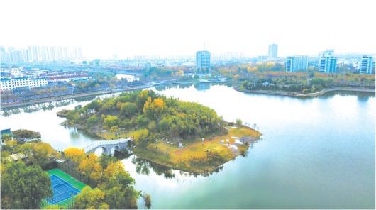 11月12日拍摄的东营明潭公园(无人机照片)。 (新华社发)